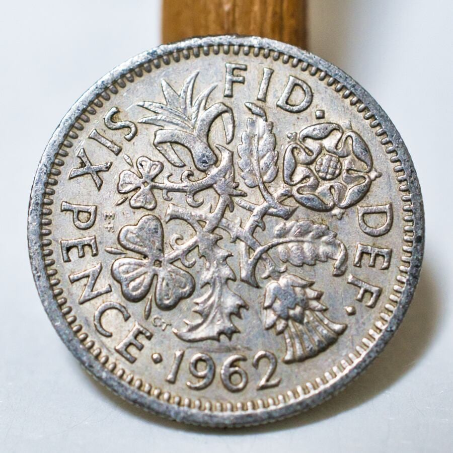 イギリスで1953-1970年まで発行されていた6ペンス硬貨です。