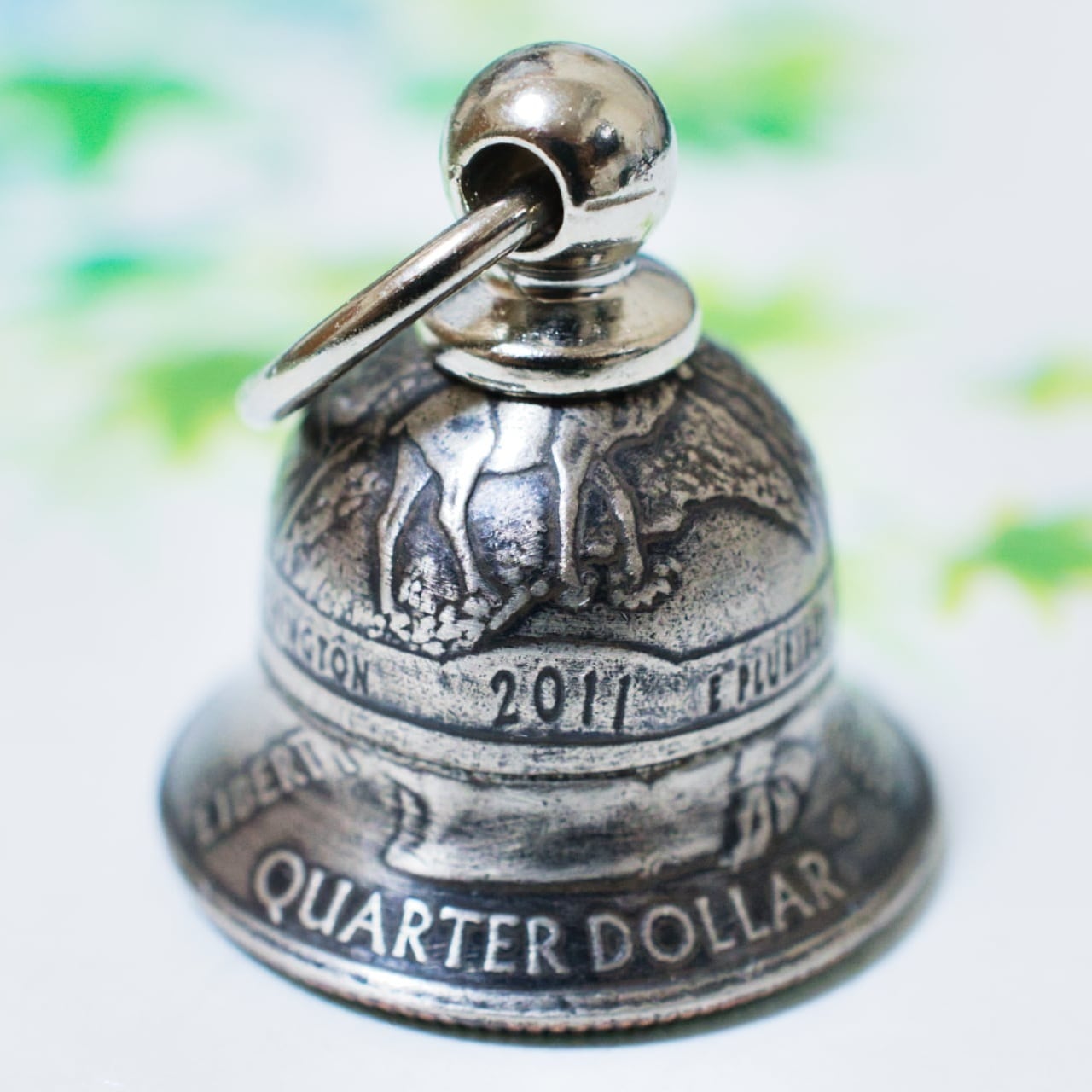 ワシントン州のアメリカ・ザ・ビューティフルコインを2枚使用して制作した贅沢なベルです。